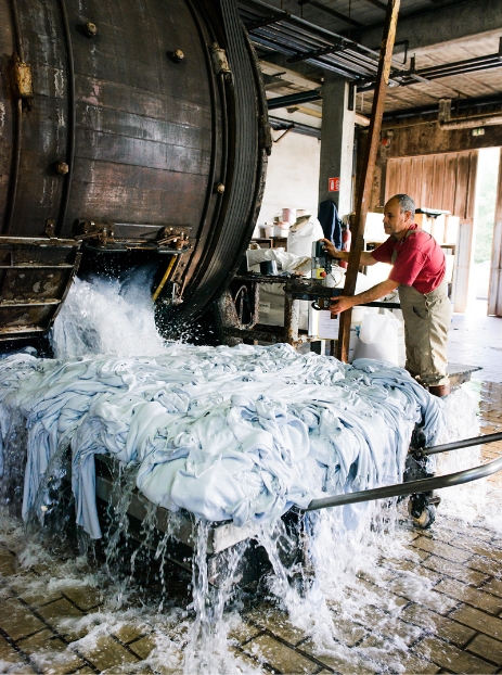 C'est dans nos foulons que nous retannons les peaux d'agneaux en wet-blue afin de leur conférer des caractéristiques mécaniques qui préparent la magie des cuirs stretch MAGISCO. Puis, c'est dans le grenier, un lieu hors du temps, qu'à claire voie des mains expertes prennent soin du séchage des peaux.